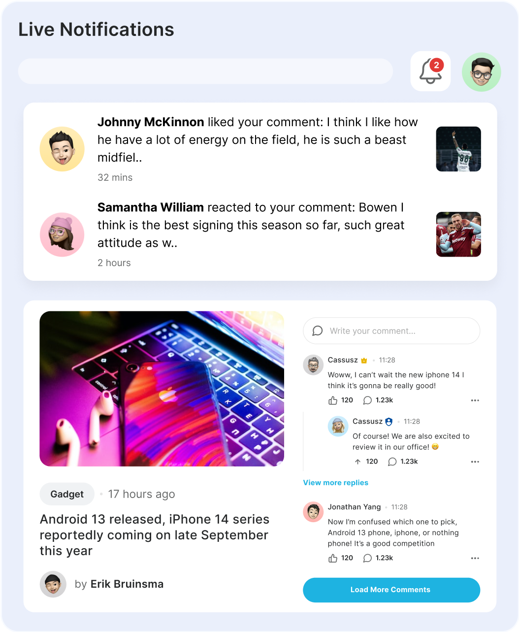 Our mobile apps come with all the features your users want, like night mode, notifications, and a comment system
